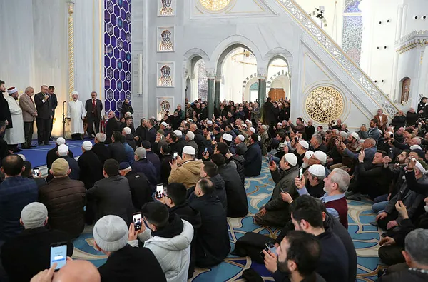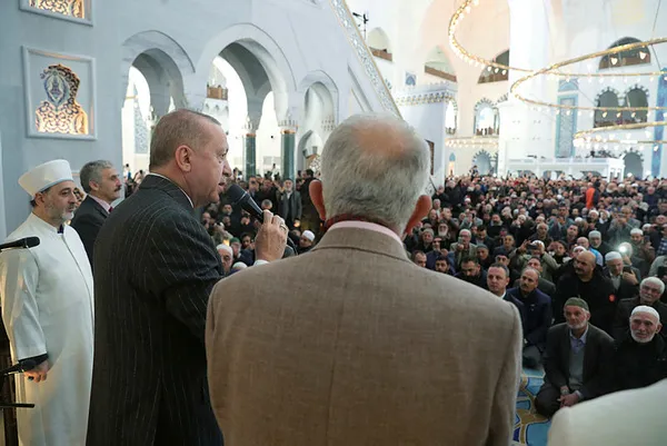 Son dakika haberi… Başkan Recep Tayyip Erdoğan, cuma namazını Büyük Çamlıca Camii‘nde kıldı. Erdoğan namazın ardından cemaate «Malum dünyada bir koronavirüs salgını var. Bu salgın nedeniyle öpüşme tokalaşma çok önemli bir münasebettir. Bu aralar bu sarılmaları öpüşmeleri erteleyelim. Bunu da ben sizden istirham etmiş olayım. Bir şeyi yapalım derken diğerini kaybetmeyelim. Önemli olan gönlümüzden, kalbimizden geçendir» sözleri ile hitap etti.