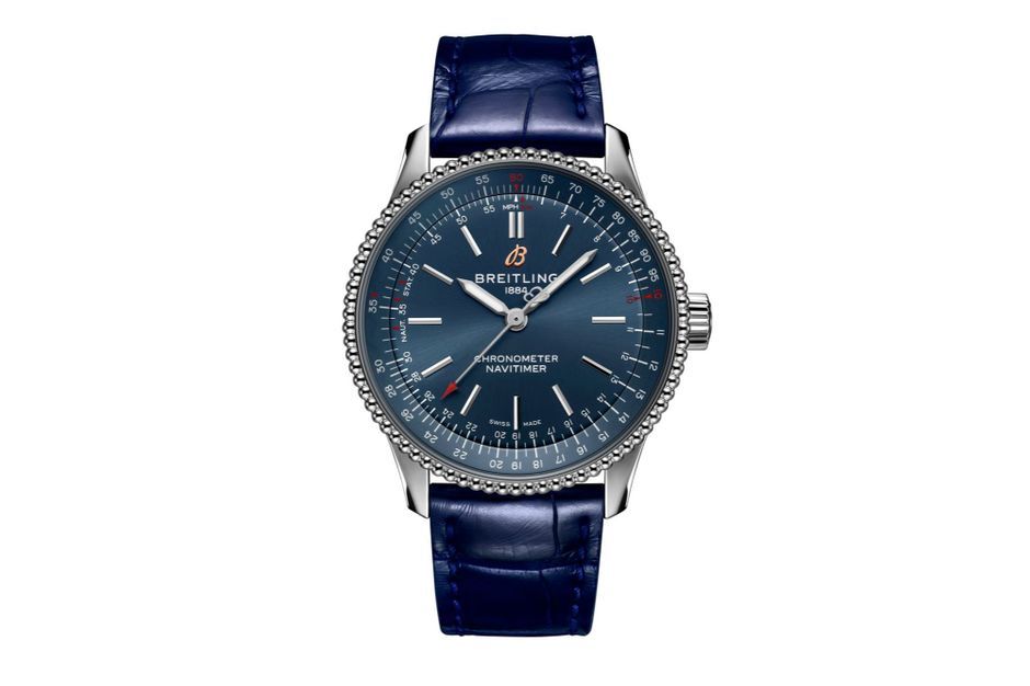 Créée en 1952 par Breitling, la Navitimer reste la plus célèbre des montres d’aviateurs. Dotée de la fonction chronographe et enrichie de sa règle à calculs circulaire, elle devient pour la première fois féminine. Son boîtier est réduit à 35 mm de diamètre et la fonction chronographe disparait.