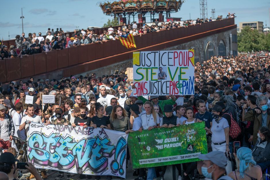 Sous le soleil, la manifestation se déroulait dans une ambiance familiale, beaucoup tenant une fleur à la main, et du reggae était diffusé. En tête du cortège, le frère et la soeur de Steve étaient présents, derrière une banderole «Ni oubli, ni pardon». La présence policière était discrète, selon une journaliste de l’AFP présente sur place.