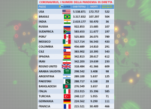 I dati sulla pandemia di Coronavirus forniti dalla civile: nelle ultime 24 ore in Italia ci sono stati 4 morti, 146 guariti e 479 nuovi casi su 36.507 tamponi. Oggi è risultato positivo l’1,31% dei test processati, in linea con gli ultimi giorni. Le Regioni con il più alto numero di casi sono: Veneto (78), Lazio (68), Lombardia (61), Emilia Romagna (51), Campania (46), Piemonte (40) e Sicilia (39). Il bilancio aggiornato ad oggi in Italia è di: