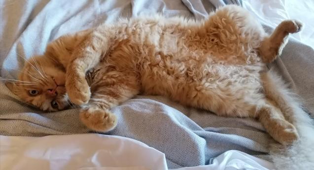 A. Fox. I inherited Foxy and, being quite lazy with names (see below, Cat C) I have abbreviated her name to Fox. She bites if I annoy her too much by stroking her, so doesn't deserve the rather sweeter 'Foxy'. I hope noAmericans call round and use her name. It's going to sound wrong, let's face it. Fox has huge paws and is the most heavy-footed cat I have ever come across. When hungry, she stomps through the house, tail aloft, wailing. When this fails to get the desired result there follows clawing of chair and hissing at other cats. Then there is 'Cute', rolling around purring, paws waving and general 'Look at me' behaviour. Nothing new to see there. But as a last resort there is reaching up to the door knocker and rapping it. That is spookily intelligent, in my experience.